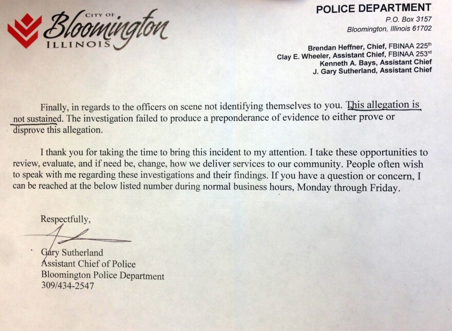 That same day, they said they attempted to see McLean County State's Attorney Jason Chambers to discuss what they had witnessed at the scene of the arrest. They were told by a staff member Chambers would telephone them.