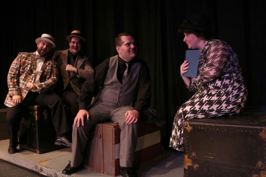 "We have four main performers and three of them play many roles," said director Scott Myers. "In one scene in a train station, two actors play a porter and a newspaper boy and an old lady and police officers -- they just change with hats. It's immediate and quickly done between characters. that almost had to be choreographed so that it came across the way we wanted it to. They do an excellent job!"